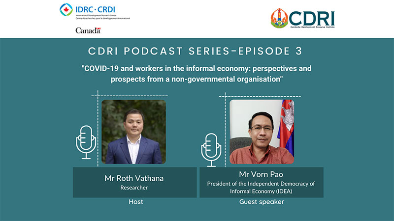 As part of a regional project on “Impacts of COVID-19 on Inclusive Development and Governance: Rapid and Post-Pandemic Assessment in the CLMV”, the Cambodia Development Resource Institute is pleased to present episode #3 of our Podcast Series on “COVID-19 and workers in the informal economy: perspectives and prospects from a non-governmental organisation”.