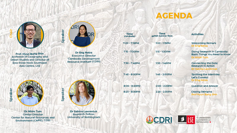 Hence, in this upcoming May and in celebration of World Day for Cultural Diversity for Dialogue and Development, Cambodia Development Resource Institute (CDRI) and Saw Swee Hock Southeast Asia Centre (SEAC) at the London School of Economics and Political Science (LSE) are delighted to collaborate to host an online panel discussion on "Doing Research in Cambodia: Connecting the Dots, Spotting the Interlinks". This is also part of CDRI's Connect-#LeadTheWay initiative.