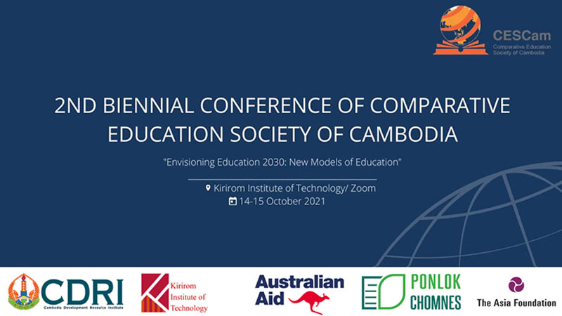 As a part of its “Thnal Udom Chomnes: Promoting Cambodian Higher Education Innovation” funded by the Australian Government through The Asia Foundation's Ponlok Chomnes: Data and Dialogue for Development in Cambodia, Cambodia Development Resource Institute (CDRI) in collaboration with Kirirom Institute of Technology (KIT) is organizing the Conference of Comparative Education Society of Cambodia (CESCam) on 14-15 October 2021 under the theme: “Envisioning Education 2030: New Models of Education”.