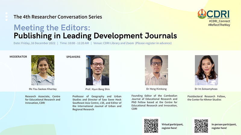 The 4th Researcher Conversation Series on Meeting the Editors: Publishing in Leading Development Journals aims to provide a casual discussion between the researchers and editors on publishing an academic/scholarly journal in leading development journals. The discussion will concentrate on:
