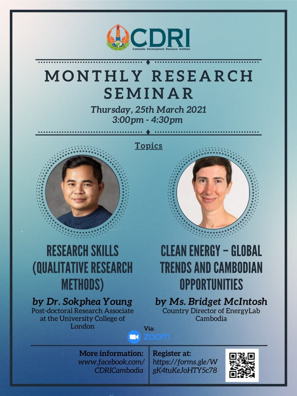 CDRI is hosting our virtual monthly research seminar on Thursday, March 25, 2021, at 3:00 -4:30PM (Phnom Penh time) via Zoom. By topic: