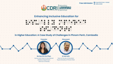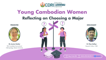 Join us at CDRI’s Monthly Research Seminar on 𝐘𝐨𝐮𝐧𝐠 𝐂𝐚𝐦𝐛𝐨𝐝𝐢𝐚𝐧 𝐖𝐨𝐦𝐞𝐧 𝐑𝐞𝐟𝐥𝐞𝐜𝐭𝐢𝐧𝐠 𝐨𝐧 𝐂𝐡𝐨𝐨𝐬𝐢𝐧𝐠 𝐚 𝐌𝐚𝐣𝐨𝐫 on 26 July 2024, via Zoom! 👩🎓💡This seminar will explore two key issues affecting young Cambodian women as they prepare to enroll in university and...