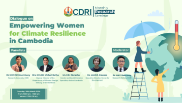 𝐘𝐨𝐮'𝐫𝐞 𝐢𝐧𝐯𝐢𝐭𝐞𝐝! In celebration of International Women's Day, CDRI is delighted to host a dialogue on 𝐄𝐦𝐩𝐨𝐰𝐞𝐫𝐢𝐧𝐠 𝐖𝐨𝐦𝐞𝐧 𝐟𝐨𝐫 𝐂𝐥𝐢𝐦𝐚𝐭𝐞 𝐑𝐞𝐬𝐢𝐥𝐢𝐞𝐧𝐜𝐞 𝐢𝐧 𝐂𝐚𝐦𝐛𝐨𝐝𝐢𝐚. This discussion topic will explore the challenges, opportunities, and policy implications for e...