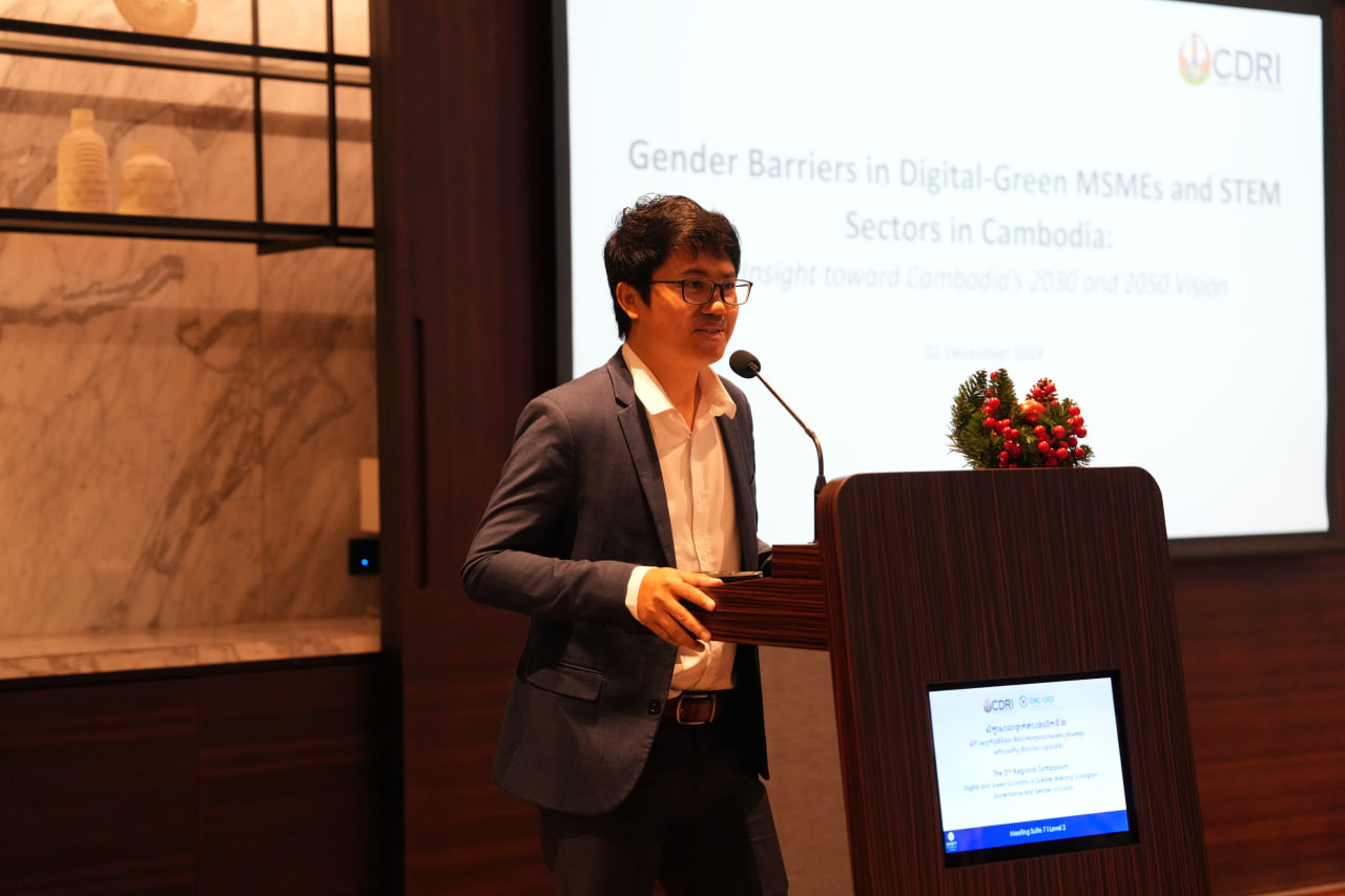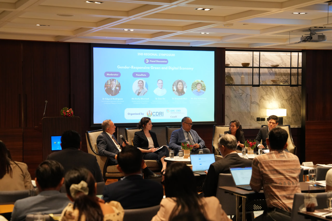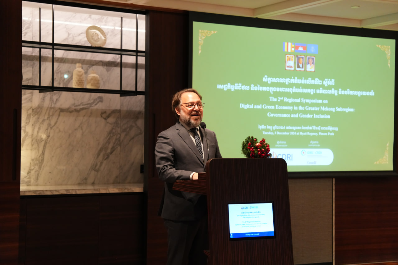 On 3rd December 2024, CDRI's Economic Centre successfully organized a ๐๐ง๐ ๐๐๐ ๐ข๐จ๐ง๐๐ฅ ๐๐ฒ๐ฆ๐ฉ๐จ๐ฌ๐ข๐ฎ๐ฆ on "๐๐ข๐ ๐ข๐ญ๐๐ฅ ๐๐ง๐ ๐๐ซ๐๐๐ง ๐๐๐จ๐ง๐จ๐ฆ๐ฒ ๐ข๐ง ๐ญ๐ก๐ ๐๐ซ๐๐๐ญ๐๐ซ ๐๐๐ค๐จ๐ง๐ ๐๐ฎ๐๐ซ๐๐ ๐ข๐จ๐ง: ๐๐จ๐ฏ๐๐ซ๐ง๐๐ง๐๐ ๐๐ง๐ ๐๐๐ง๐๐๐ซ ๐๐ง๐๐ฅ๐ฎ๐ฌ๐ข๐จ๐ง", with support from International Development Research Centre (IDRC), at Hyatt Regency Phnom Penh.