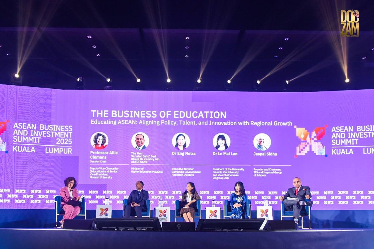 At the ASEAN Business and Investment Summit (ABIS) 2025, our Executive Director Dr Netra ENG participated as a panel speaker among ASEAN education industry leaders and senior policymakers including Malaysia’s Higher Education Minister to discuss on “Educating ASEAN: Aligning Policy, Talent, and Innovation with Regional Growth”, exploring how ASEAN can (1) transform its education system and talent development strategies in response to the demands of an AI-driven, digital, and sustainable future and (2) strengthen cross-border cooperation on talent mobility, mutual recognition of qualifications, and shared education standards.