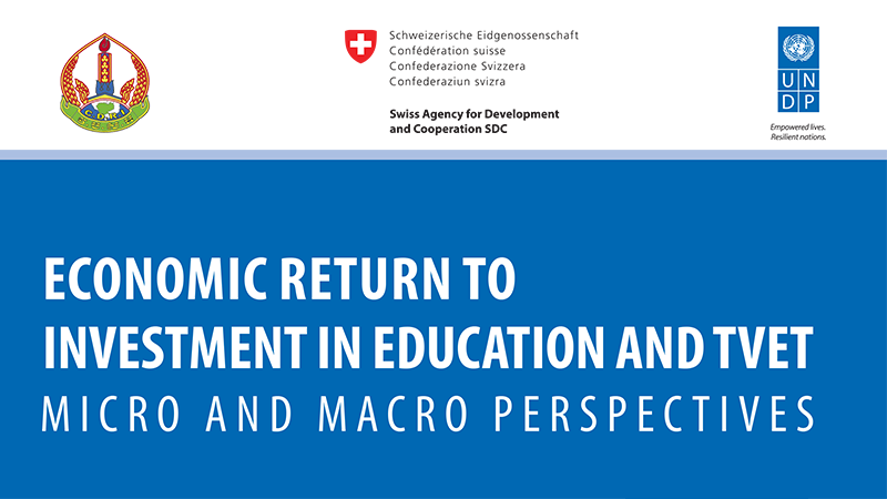 As part of the UN Joint Programme, UNDP seeks to examine the relationship between the economic/ monetary returns at individual, household and national level of investments in education and technical vocational education and training (TVET). Therefore, this study will be done in concerted efforts with the Ministry of Education Youth and Sport (MoEYS), Ministry of Labour and Technical Vocational Training (MoLVT), and Ministry of Industry and Handicraft (MoIH). However, other relevant agencies will be engaged throughout the study.