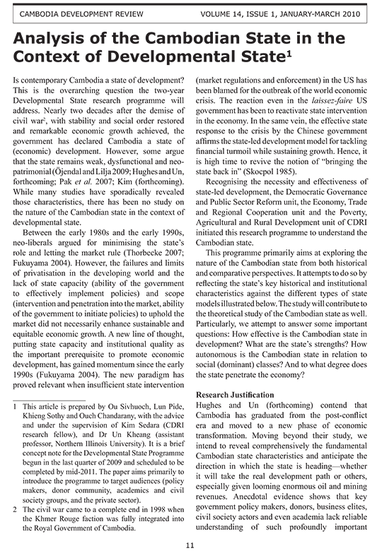 Analysis of the Cambodian State in the Context of Developmental State