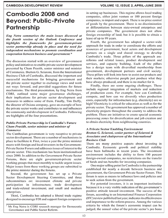 Cambodia: A 2008 Macro View—Key Indicators, Major Development Challenges, Our Region, the Private Sector