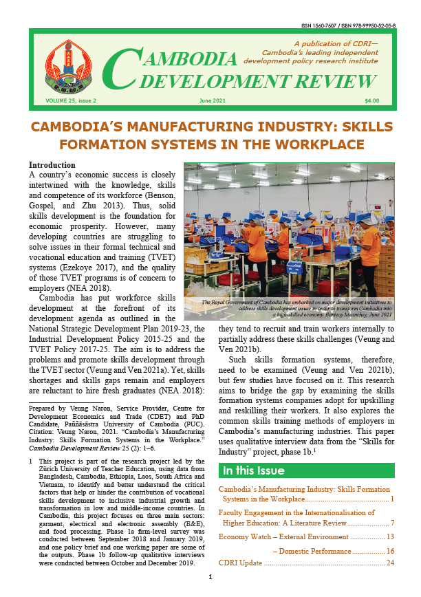 Cambodia’s Manufacturing Industry: Skills Formation Systems in the Workplace