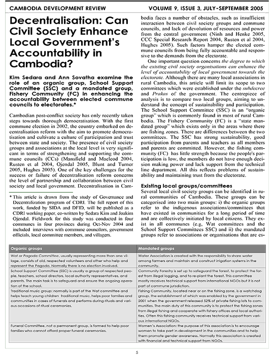 Decentralisation: Can Civil Society Enhance Local Government’s Accountability in Cambodia?