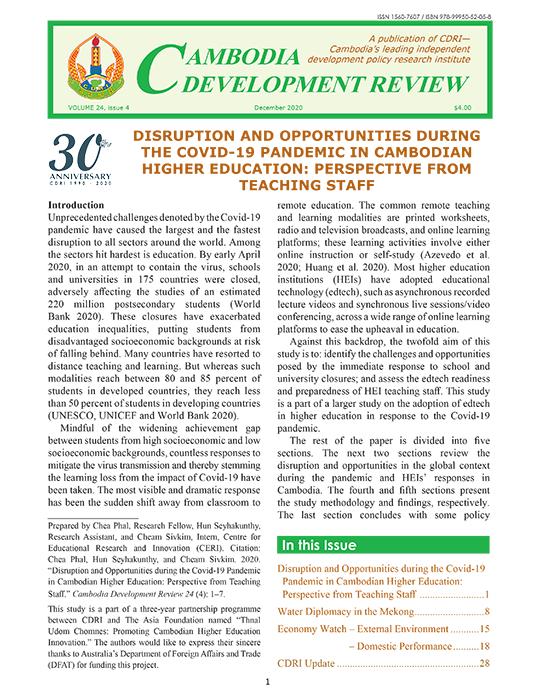 Disruption and Opportunities During the Covid-19 Pandemic in Cambodian Higher Education: Perspective from Teaching Staff