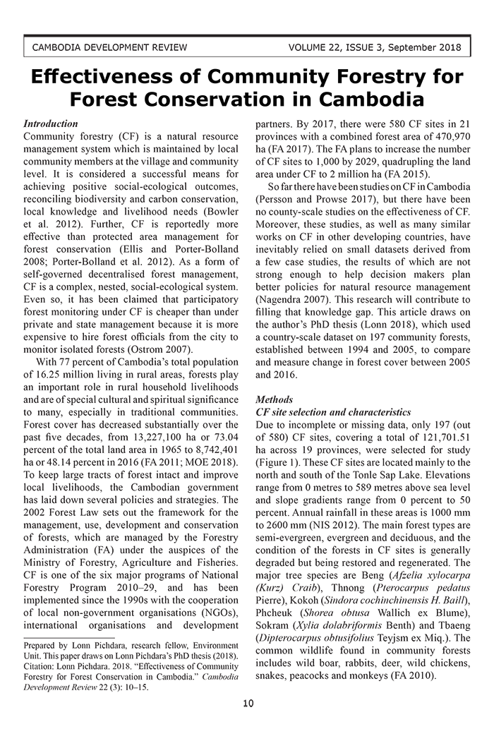 Effectiveness of Community Forestry for Forest Conservation in Cambodia