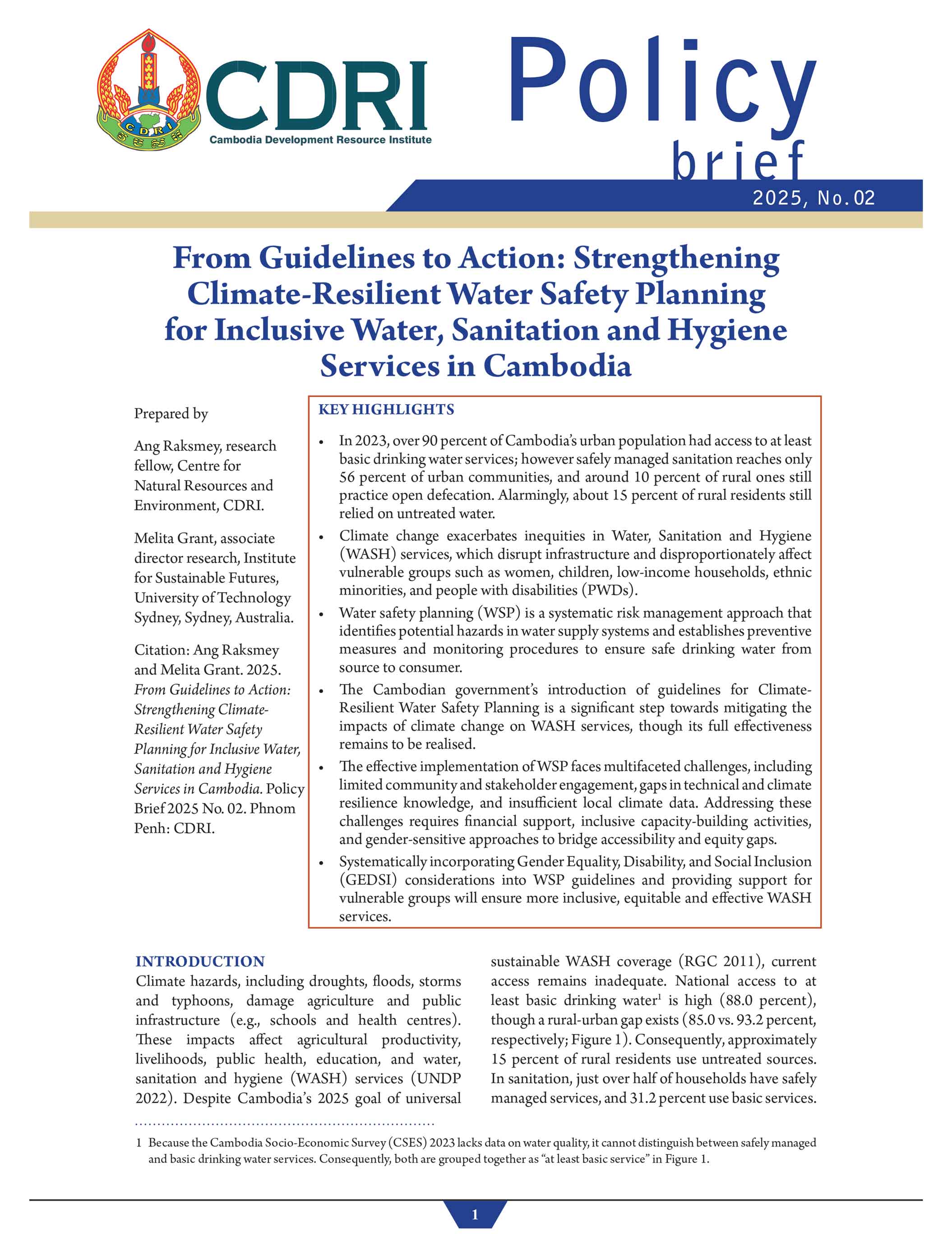 - The Cambodian government’s introduction of guidelines for Climate-Resilient Water Safety Planning is a significant step towards mitigating the impacts of climate change on WASH services, though its full effectiveness remains to be realised.