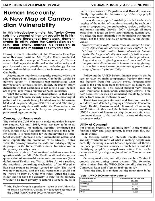 Human Insecurity: A New Map of Cambodian Vulnerability