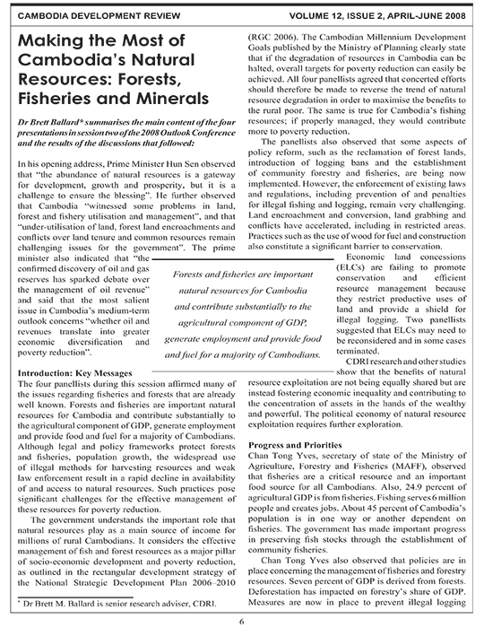 Making the Most of Cambodia’s Natural Resources: Forests, Fisheries and Minerals
