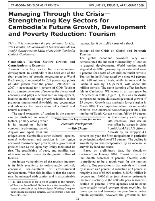 Managing Through the Crisis— Strengthening Key Sectors for Cambodia’s Future Growth, Development and Poverty Reduction: Tourism