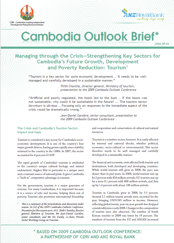Managing through the Crisis—Strengthening Key Sectors for Cambodia’s Future Growth, Development and Poverty Reduction: Tourism