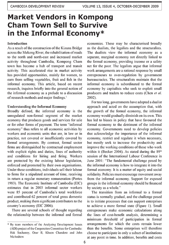 Market Vendors in Kompong Cham Town Sell to Survive in the Informal Economy*