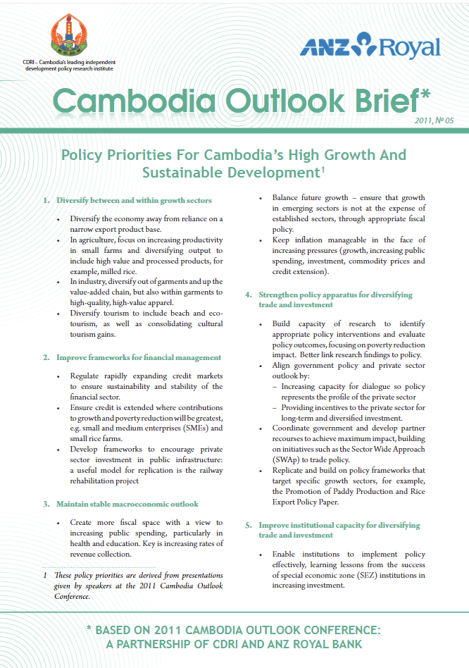 Policy Priorities For Cambodia’s High Growth And Sustainable Development