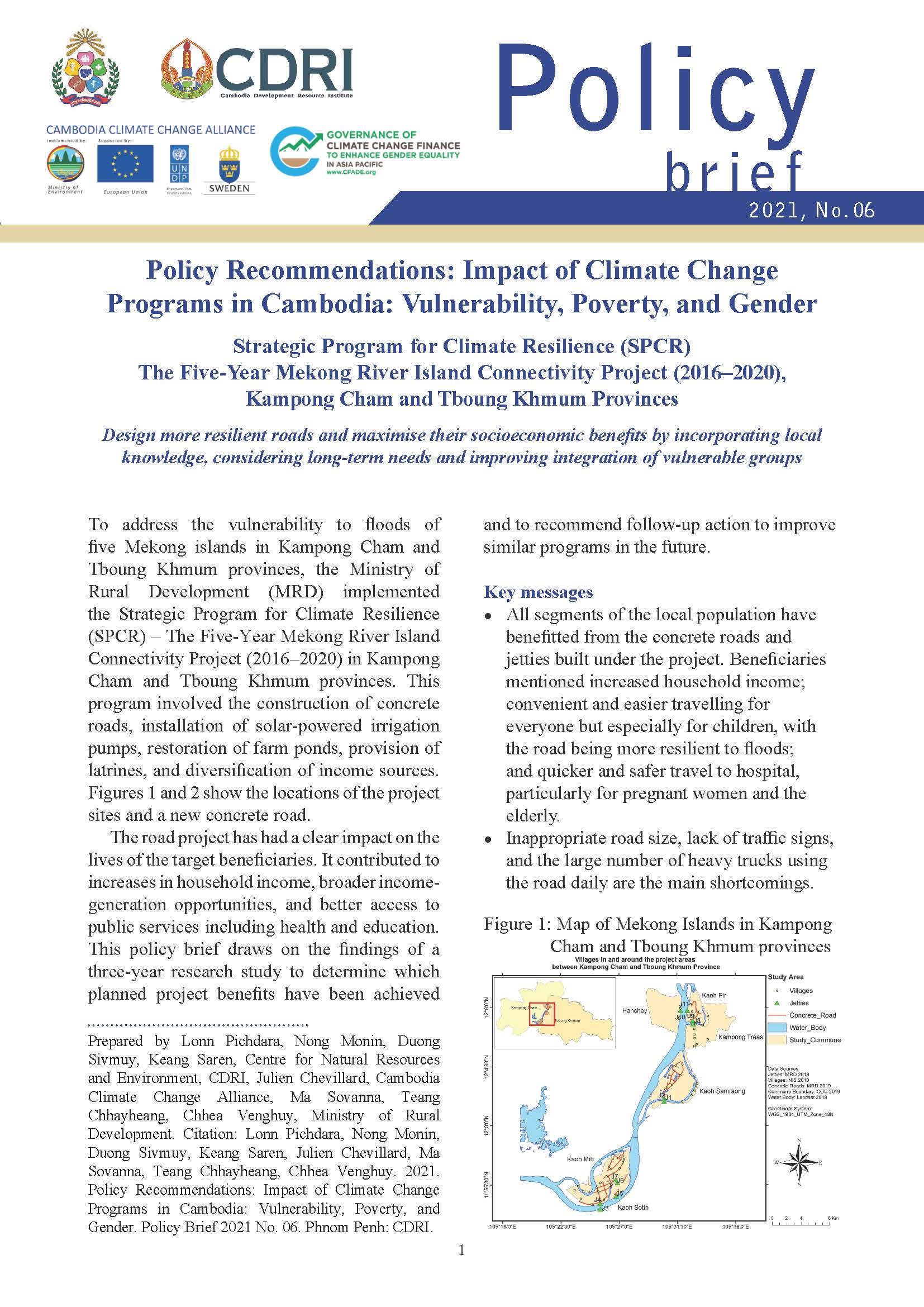 Policy Recommendations: Impact of Climate Change Programs in Cambodia: Vulnerability, Poverty, and Gender