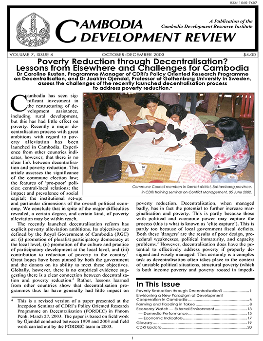 Poverty Reduction through Decentralisation? Lessons from Elsewhere and Challenges for Cambodia