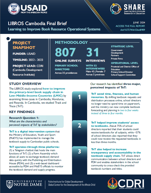 Link to the full report (Eng): https://curate.nd.edu/articles/report/SHARE_LIBROS_Learning_to_Improve_Book_Resource_Operational_Systems_Cambodia_Technical_Study_Report/24877683?file=47014198