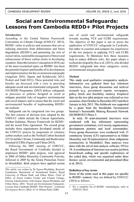 Social and Environmental Safeguards: Lessons from Cambodia REDD+ Pilot Projects