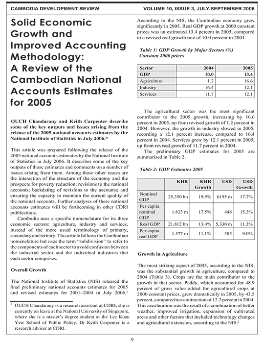 Solid Economic Growth and Improved Accounting Methodology: A Review of the Cambodian National Accounts Estimates for 2005