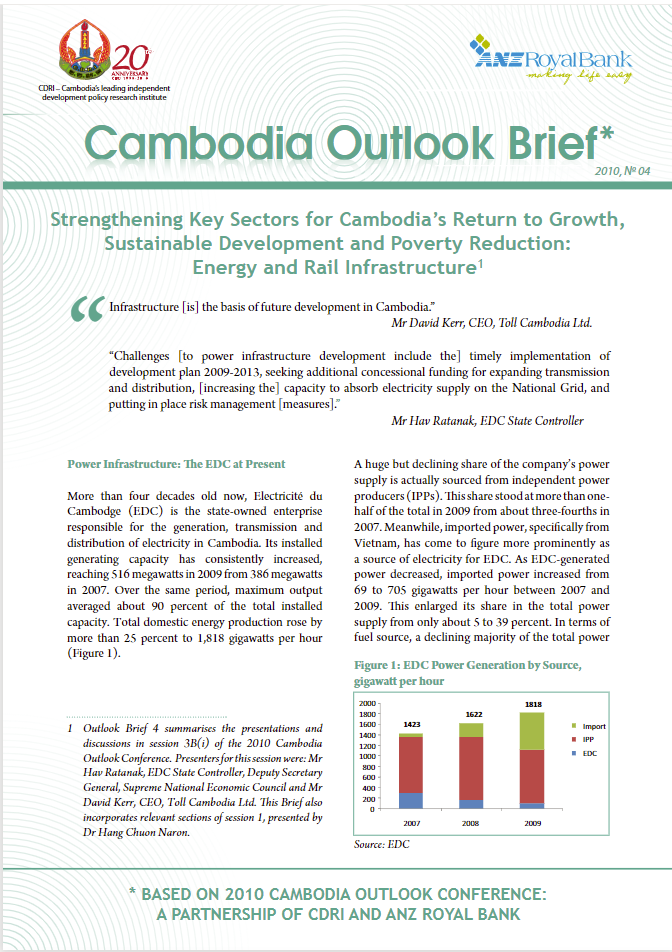Strengthening Key Sectors for Cambodia’s Return to Growth, Sustainable Development and Poverty Reduction: Energy and Rail Infrastructure