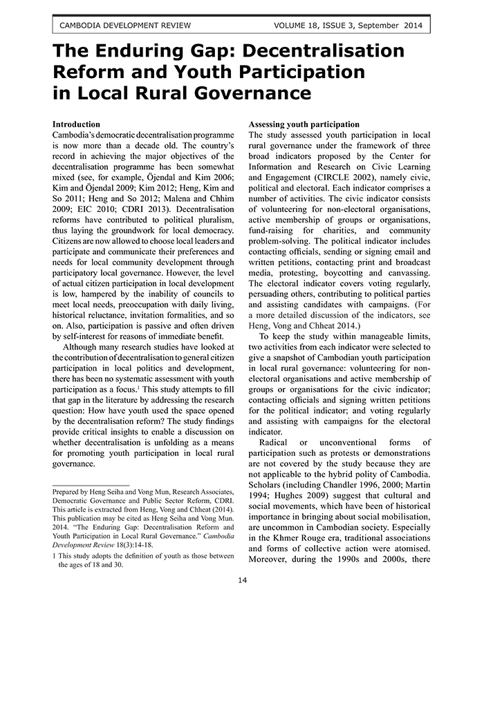 The Enduring Gap: Decentralisation Reform and Youth Participation in Local Rural Governance