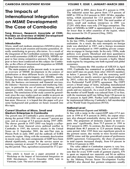 The Impacts of International Integration on MSME Development: The Case of Cambodia