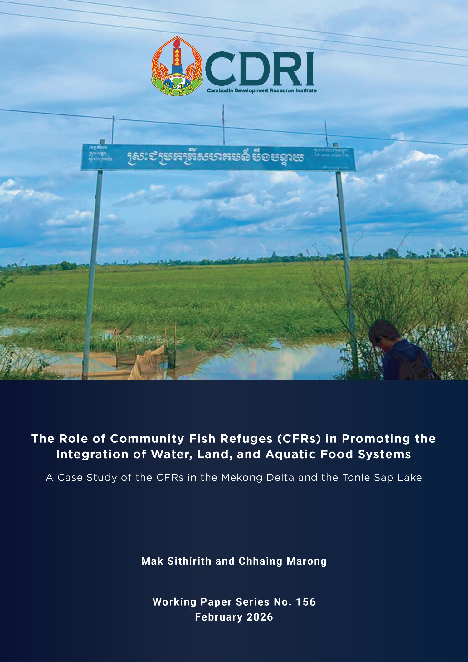 This working paper examines the role of Community Fish Refuges (CFRs) in promoting the integration of water, land, and aquatic food systems in Cambodia, drawing on six case studies in the Tonle Sap floodplain and Mekong Delta. Situated within rice-field and floodplain landscapes, CFRs function as dry-season refuges, wet-season spawning grounds, and hydrological connectors linking rivers, irrigation systems, and rice fields. Using mixed methods—including key informant interviews, focus group discussions, and participatory mapping—the study analyses ecological, hydrological, and governance dimensions of CFR systems. Findings show that perennial, seasonally expanding, and ephemeral CFRs perform complementary ecological functions that sustain fisheries productivity and biodiversity under changing flood regimes. Beyond conservation, CFRs contribute to irrigation management, rice farming, and local food security when embedded within integrated governance arrangements involving District Technical Working Groups and water user communities. The study concludes that CFRs represent viable landscape-level models for decentralised, climate-resilient resource governance in Cambodia’s floodplain and delta systems.