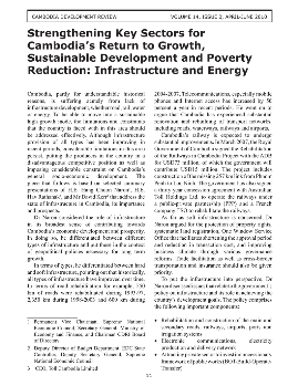 Strengthening Key Sectors for Cambodia’s Return to Growth, Sustainable Development and Poverty Reduction: Infrastructure and Energy