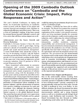 Opening of the 2009 Cambodia Outlook Conference on “Cambodia and the Global Economic Crisis: Impact, Policy Responses and Action”