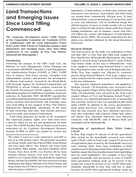 Land Transactions and Emerging Issues Since Land Titling Commenced