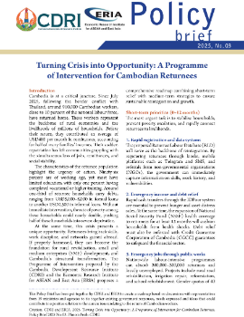 Following the 2025 border conflict with Thailand, nearly one million Cambodian migrant workers have returned home, threatening rural livelihoods and national stability. This policy brief outlines a comprehensive intervention program developed by CDRI and ERIA to address the crisis. It proposes immediate relief through cash transfers, job creation,...