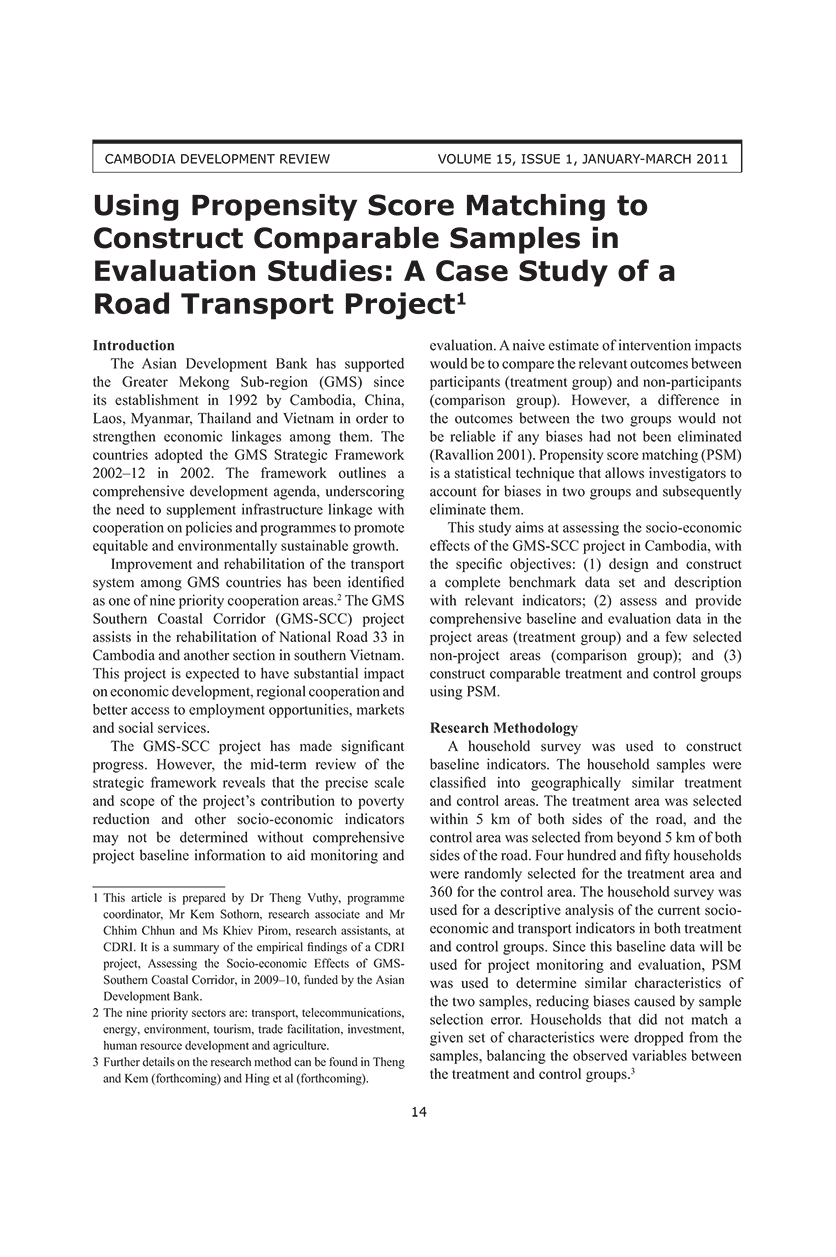 Using Propensity Score Matching to Construct Comparable Samples in Evaluation Studies: A Case Study of a Road Transport Project
