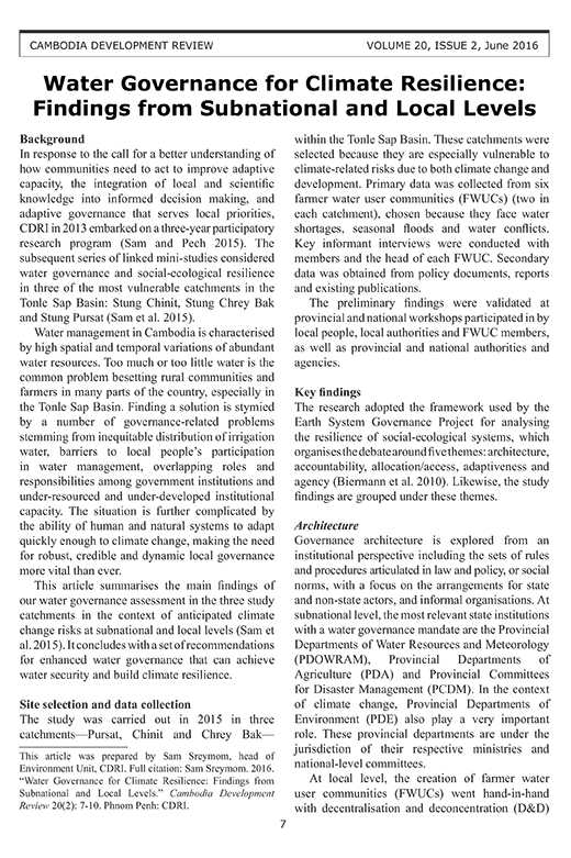 Water Governance for Climate Resilience: Findings from Subnational and Local Levels