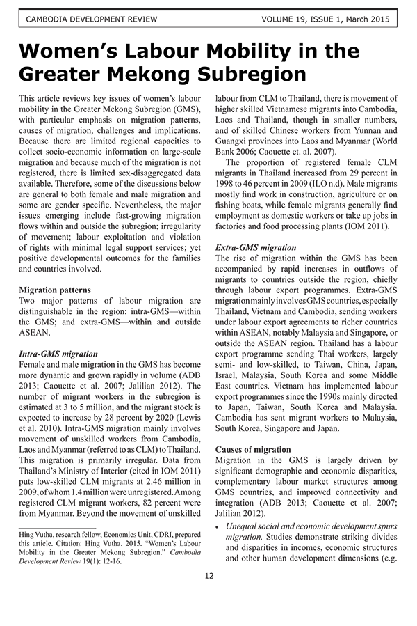 Women’s Labour Mobility in the Greater Mekong Subregion
