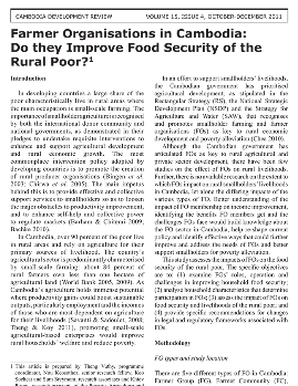 From the early 1990s, Cambodia’s agricultural food trade was seen as exports of raw materials and unprocessed primary commodities to neighboring countries such as Thailand and Vietnam. The production and processing capacity were r...