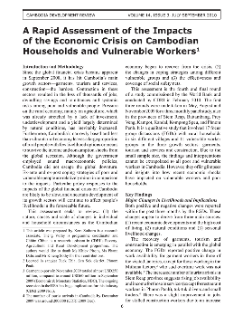 Cambodia experienced a decade of rapid economic growth until 2007, but that growth depended significantly on exploiting its natural resource base and was marked by an unusually rapid rise in inequality. While investments in health, education, rural infrastructure and microcredit are essential to improving the asset portfolio of vulnerable households, one of the most pressing needs is to improve s...