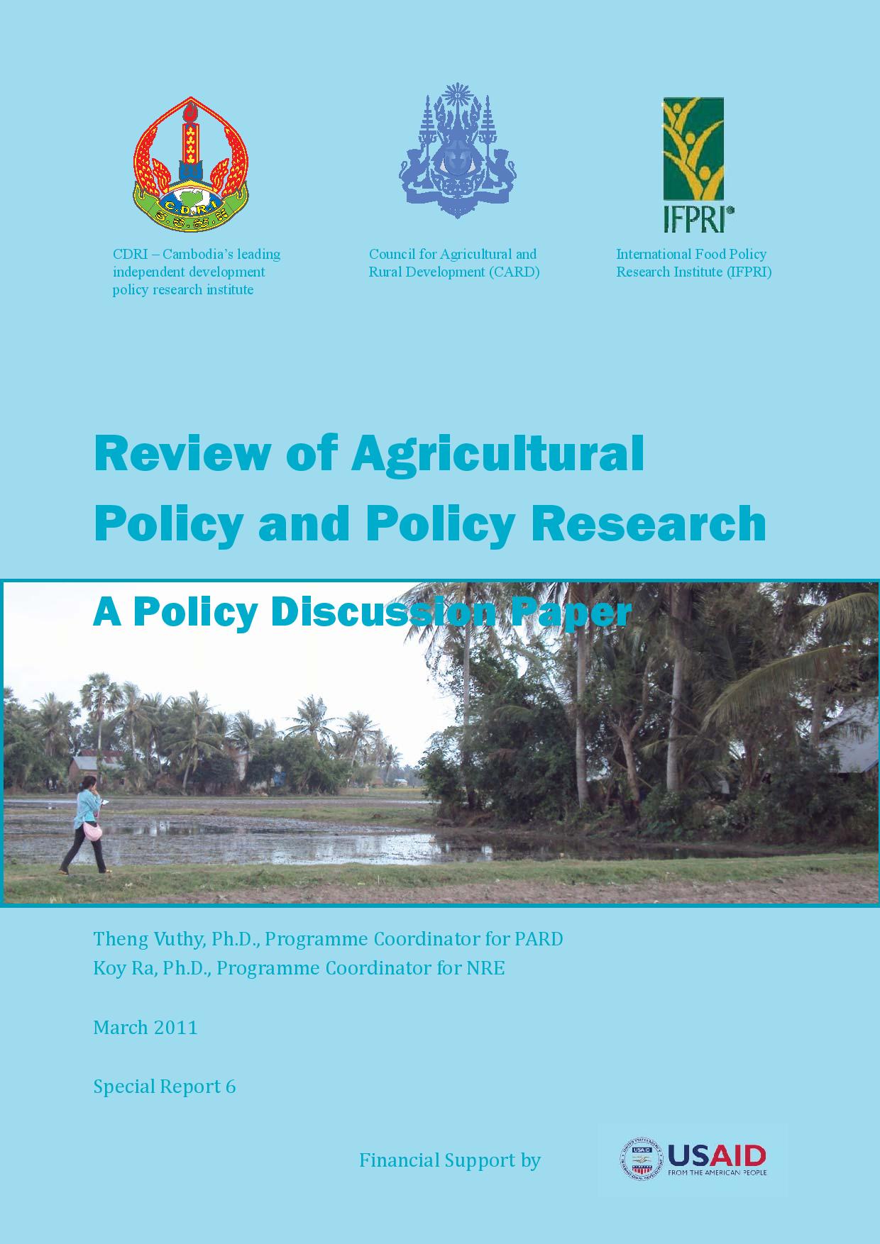 The Cambodian government articulates its agriculture policy in the Rectangular Strategy: “To improve agricultural productivity and diversification, thereby enabling the agriculture sector to serve as the dynamic driving force for economic growth and poverty reduction.” To this end, it developed the National Strategy for Agriculture and Water, which involves five major programs: institutional capac...