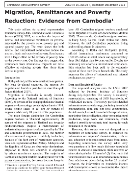 Migration, Remittances and Poverty Reduction: Evidence from Cambodia