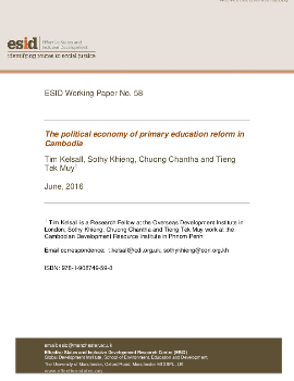 This paper examines the quality of primary education provision in Cambodia using a ‘political settlements’ framework developed at the University of Manchester. The framework characterises Cambodia as a ‘hybrid’ settlement with a weak dominant party and predatory administration, albeit with some islands of administrative effectiveness. Such states can achieve developmental progress in circumscribed...