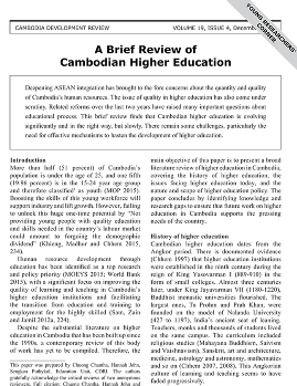 During the last decades, Cambodia’s economic structure has gradually shifted from agriculture to industry and services. This change, coupled with deepened ASEAN integration, has posed new challenges for transforming and technical and vocational education and training (TVET) and higher education to ensure that the economy is competitive regionally and globally. This paper discusses the rapidly chan...