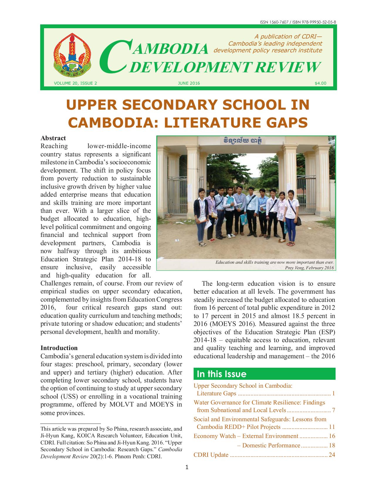 Improving the education system is one of the most significant challenges facing Cambodia. This study is the result of consultation and collaboration with national executive and legislative institutions, education institutions, development partners and private education providers that form a significant repository of skills, knowledge and experience. It encompasses several main topics: getting to g...